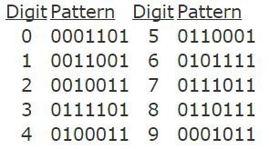 The pattern for the right side is similar except that it has an even number of 1s. This helps the computer to figure out which side is left/right, in case the product has been turned upside down! There is one more check for this. All the codes for the left side begin with a 0 while those for the right side begin with a 1, leaving the guards.
