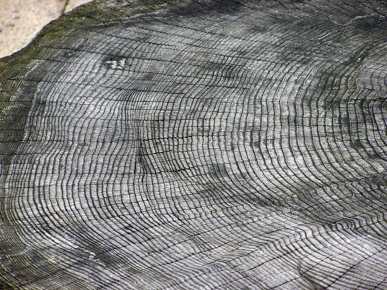 New growth in trees happens in a layer of cells just under the bark. Trees grow in a predictable pattern throughout the year, responding to seasonal changes in climate. This growth results in visible rings, with each ring marking one complete year in the tree's life. By counting these rings, scientists can figure out how old the tree is.